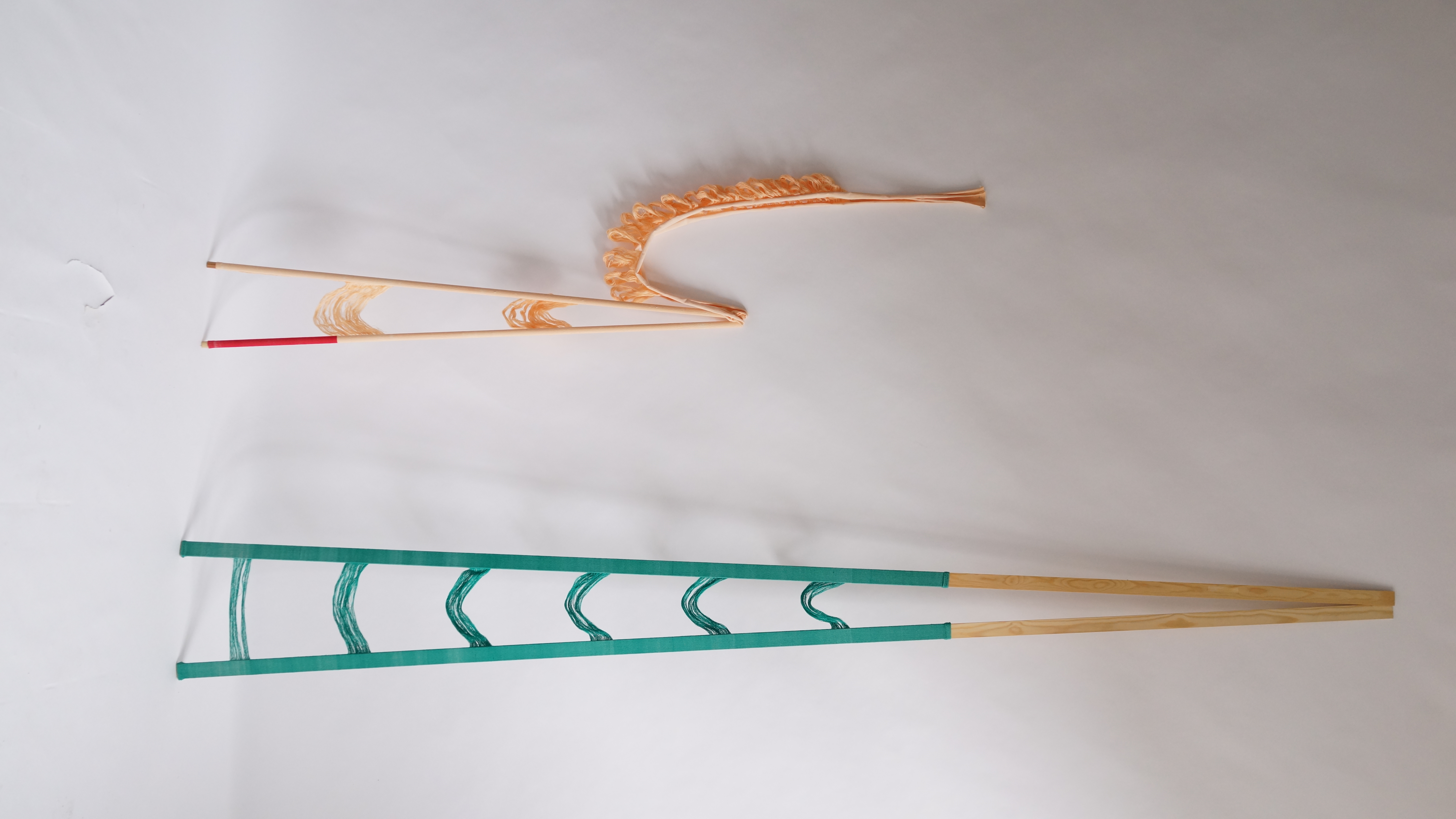 mercerised cotton, wooden strips, ca. 27 x 242 cm